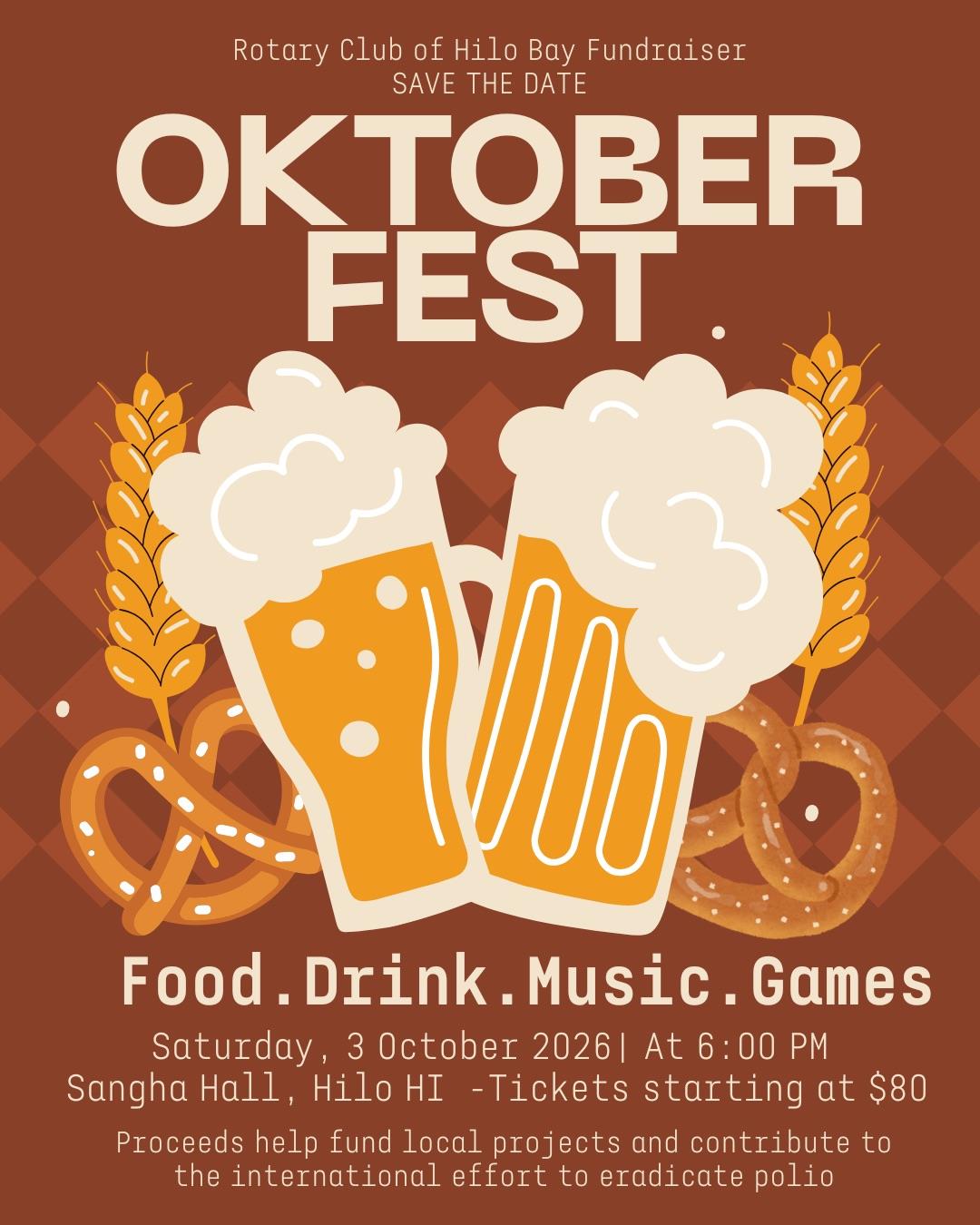 Hilo Bay Oktoberfest 2015 scored again in its second year at Sangha Hall, Oct. 2, 2015. This was the 16th annual Oktoberfest the Rotary Club of Hilo Bay (RCHB) has sponsored. At the outset, Oktoberfest was at Wailoa State Park's pavilion, then it moved on to Aunty Sally's. It soon reached the walls there, and in 2014, it moved to Sangha Hall in Hilo, Hawaii.